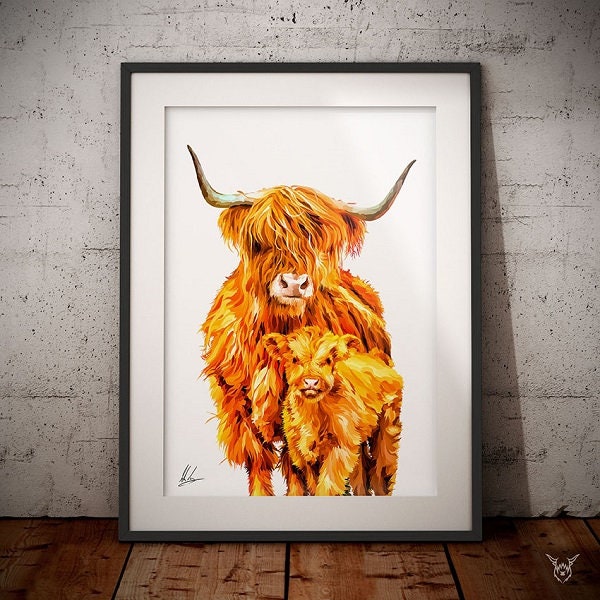 Highland Cow Calf Painting Highland Cow Art Print Hairy Etsy